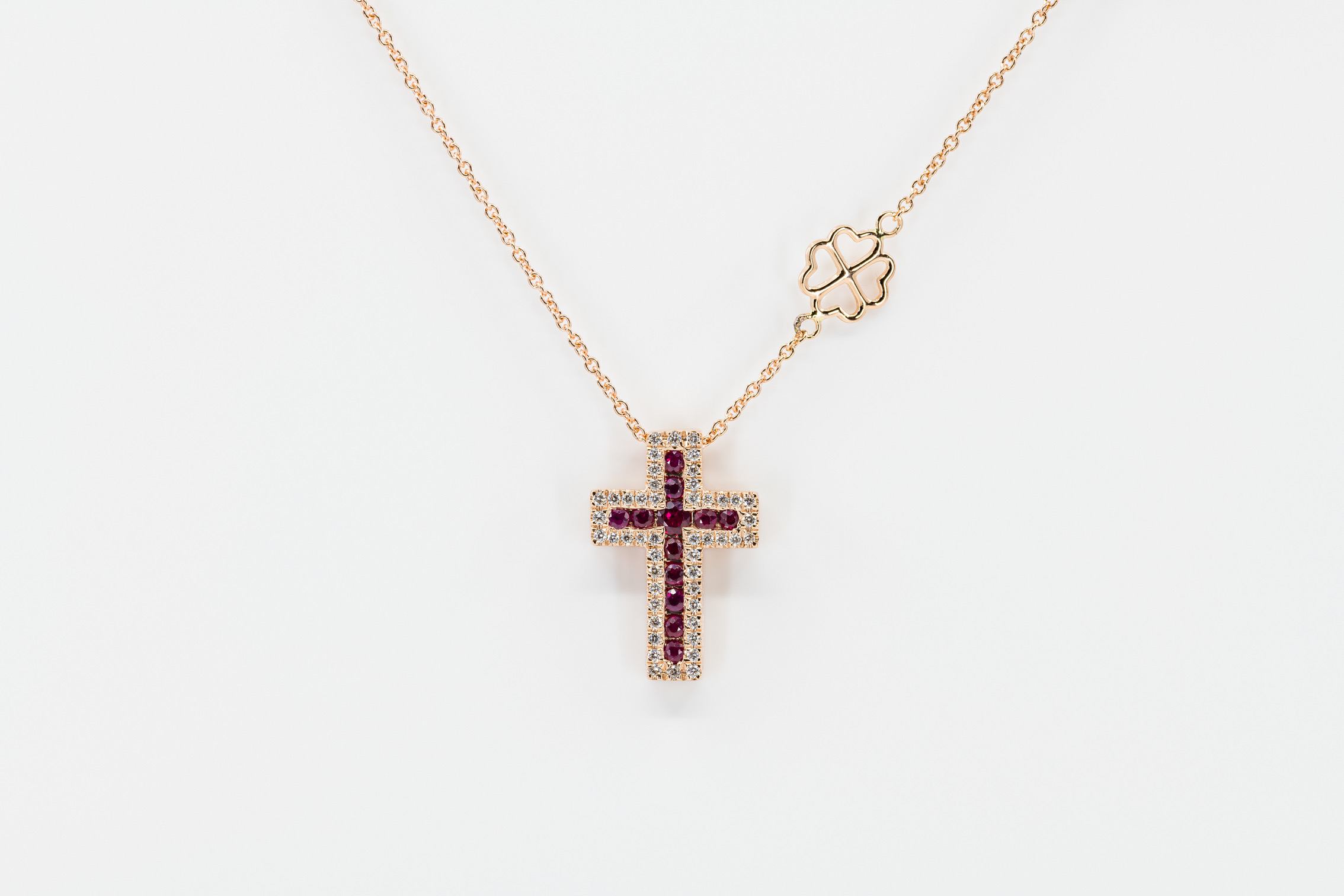 ANGELUS – collana in oro rosè montata con diamanti e rubini